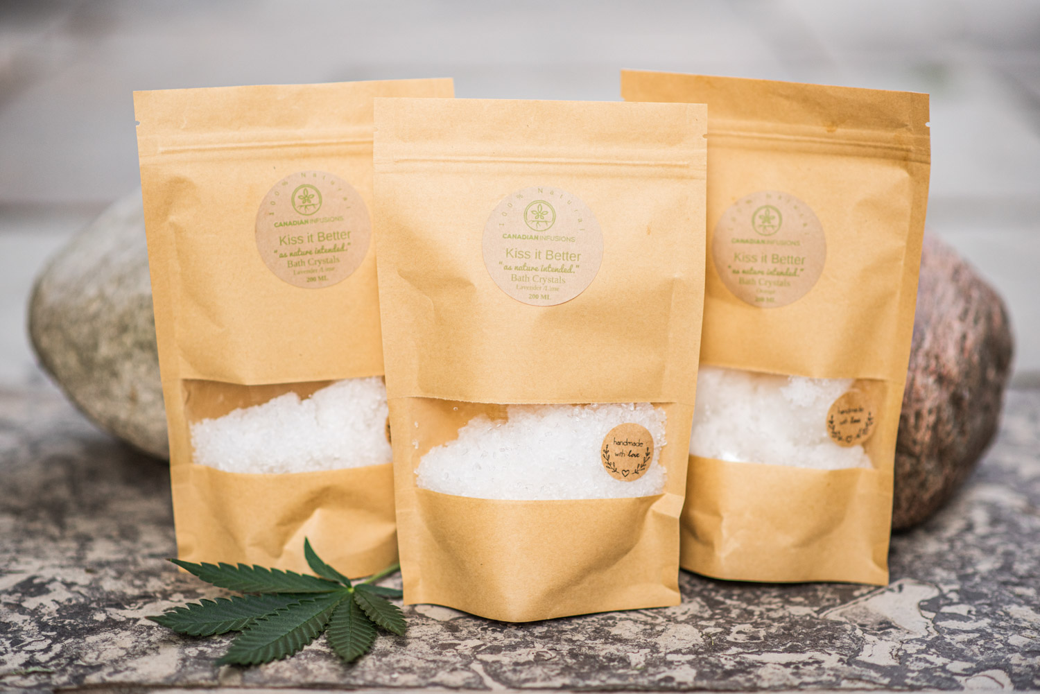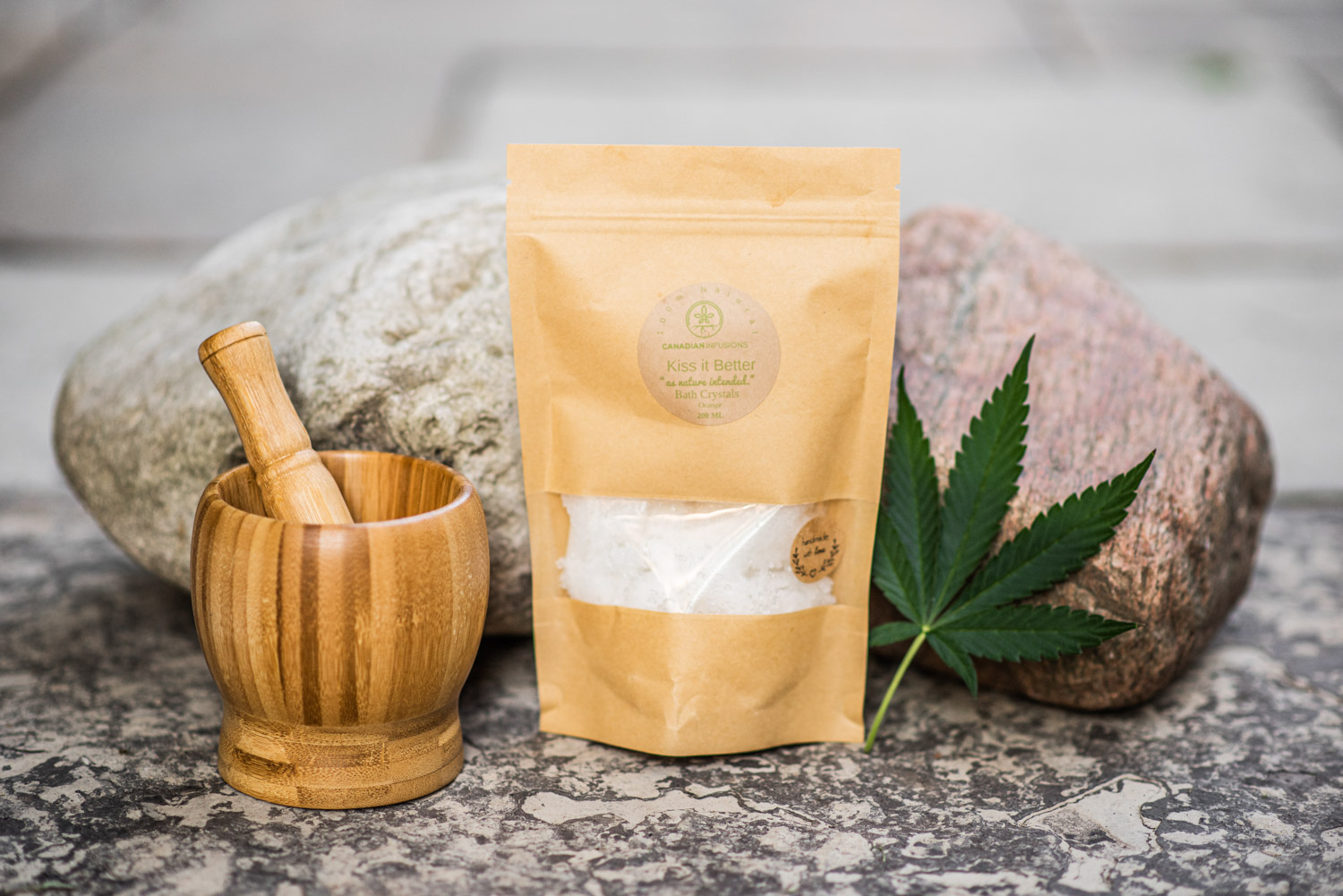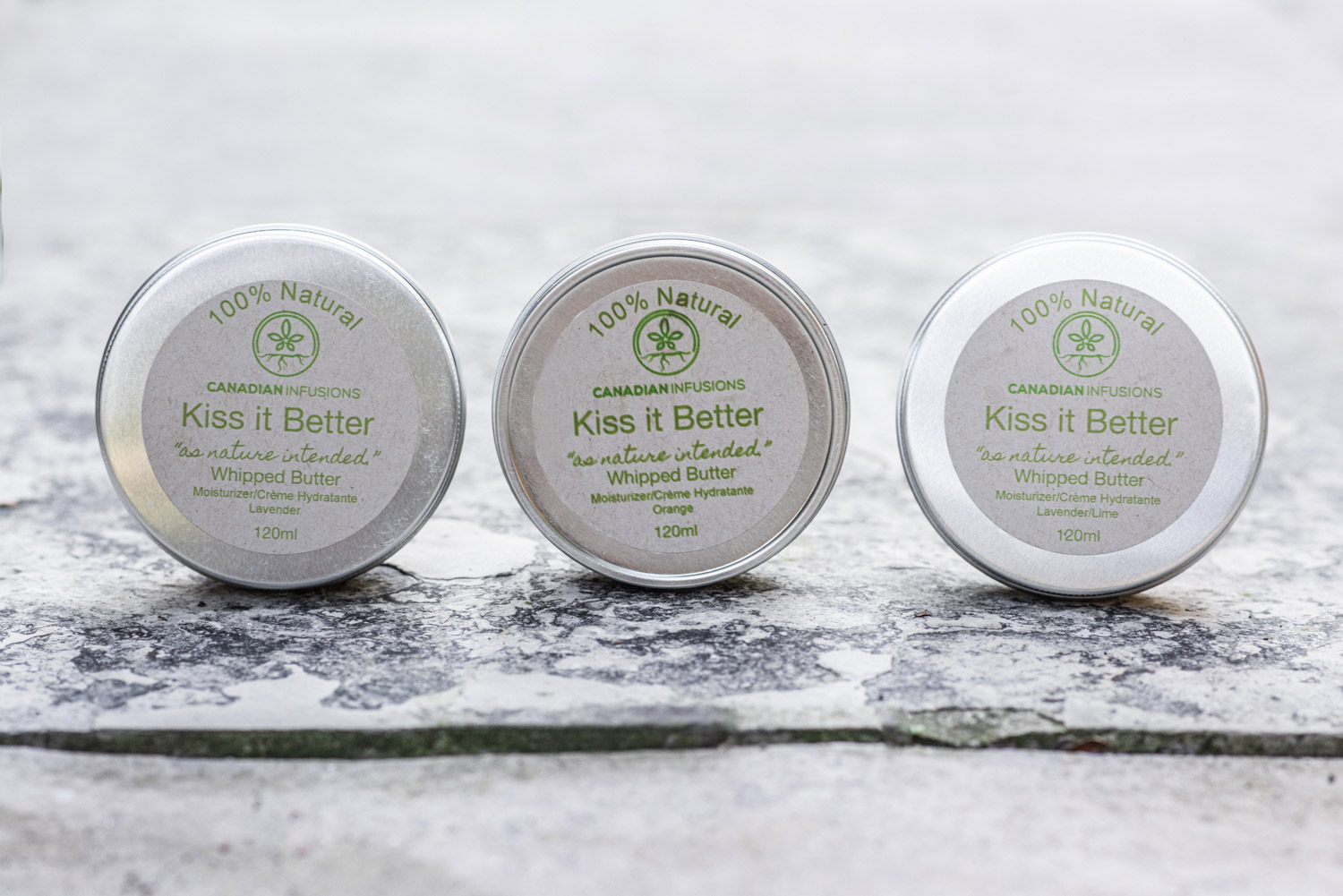 Sheila of Canadian Infusions required styled product photography of her various hemproot-based pain relief salves. She wanted an earthy, organic approach to the images, so we opted to photograph her items outside with natural light, using stones, moss, and leaves for added texture and visual interest.