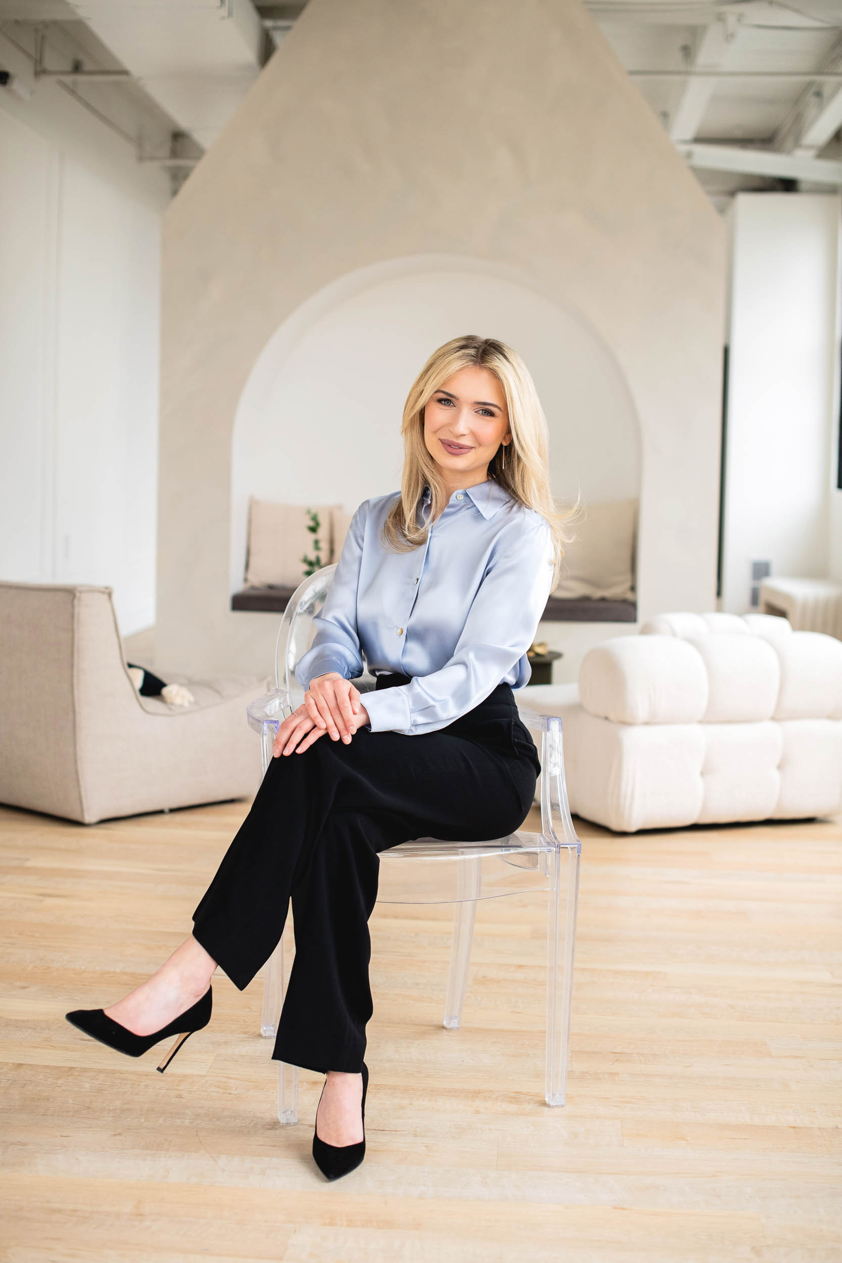 I recently had the pleasure of photographing Toronto real estate agents Brianna and her spouse Khaled at the beautiful Melrose Studio in Cambridge, Ontario. This contemporary space provided the perfect backdrop for a mix of lifestyle shots, headshots, and branding photos. Brianna and Khaled were incredibly fun to work with, and together, we created some stunning images that truly reflect their personalities and professionalism.